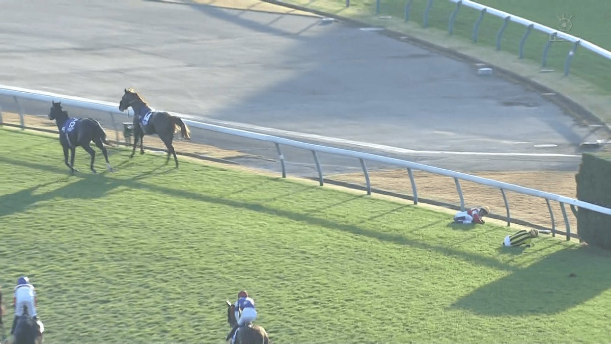 JRAのレース映像には何も映ってないからかなり後で落ちてるな