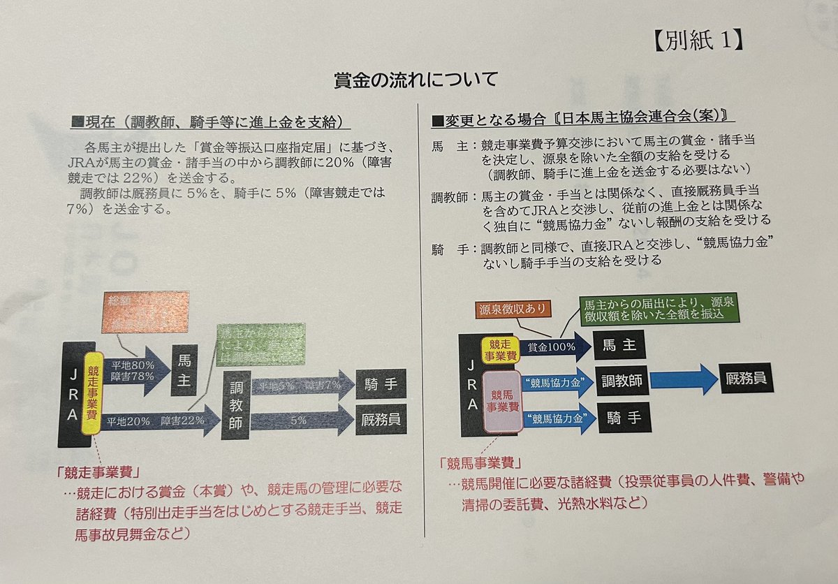 いまだとそれぞれの馬主が騎手と厩舎に都度、請求されて支払って領収書出すことになるけど新方式だとこの事務全てJRAになる